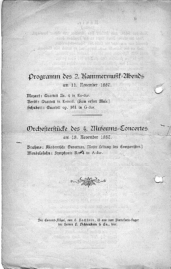 Saison 1887/88, Orchesterkonzert vom 04.11.1887