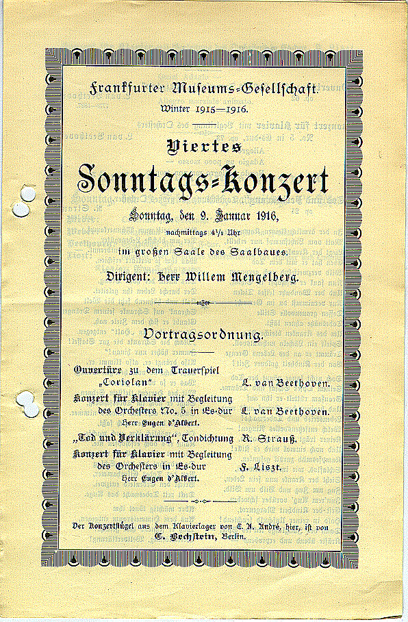Saison 1915/16, Orchesterkonzert vom 09.01.1916