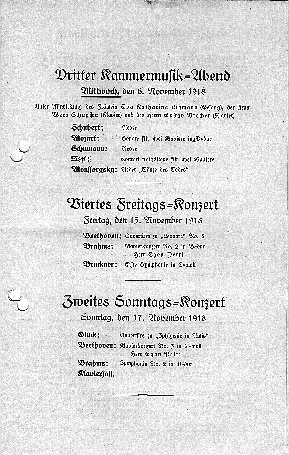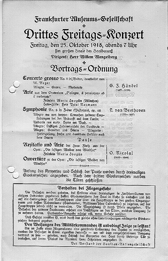 Saison 1918/19, Orchesterkonzert vom 25.10.1918