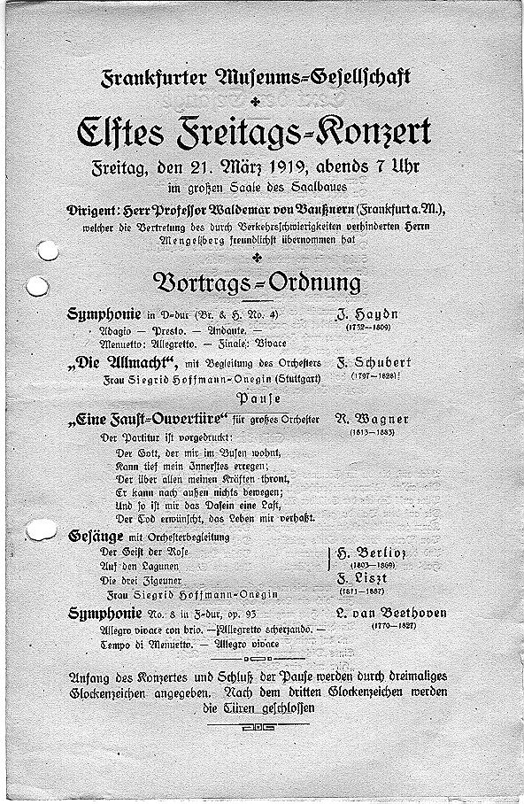 Saison 1918/19, Orchesterkonzert vom 21.03.1919