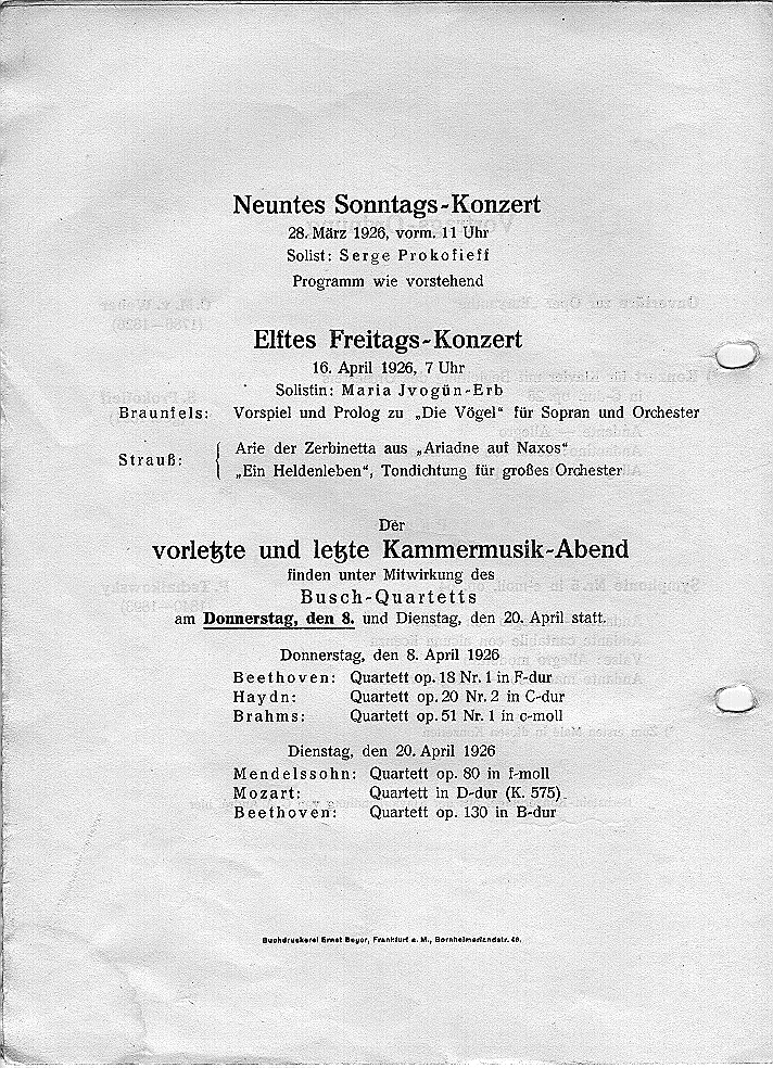 Saison 1925/26, Orchesterkonzert vom 26.03.1926