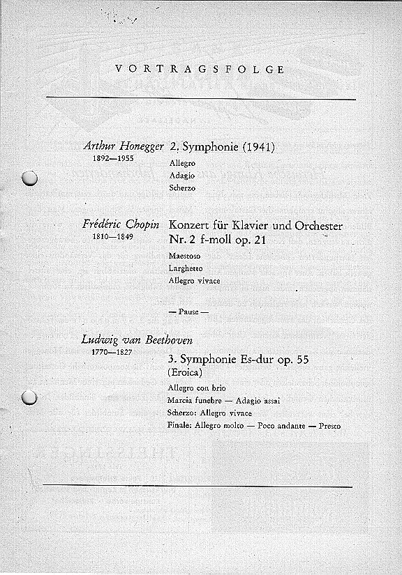 Saison 1958/59, Orchesterkonzert vom 20.10.1958