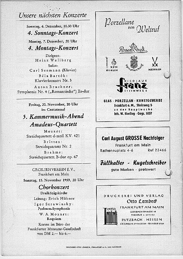 Saison 1959/60, Orchesterkonzert vom 09.11.1959