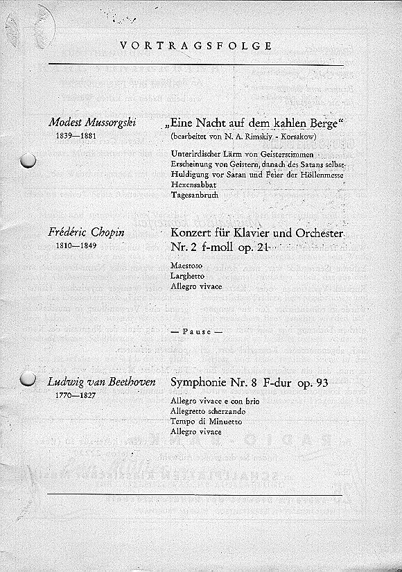 Saison 1962/63, Orchesterkonzert vom 01.10.1962